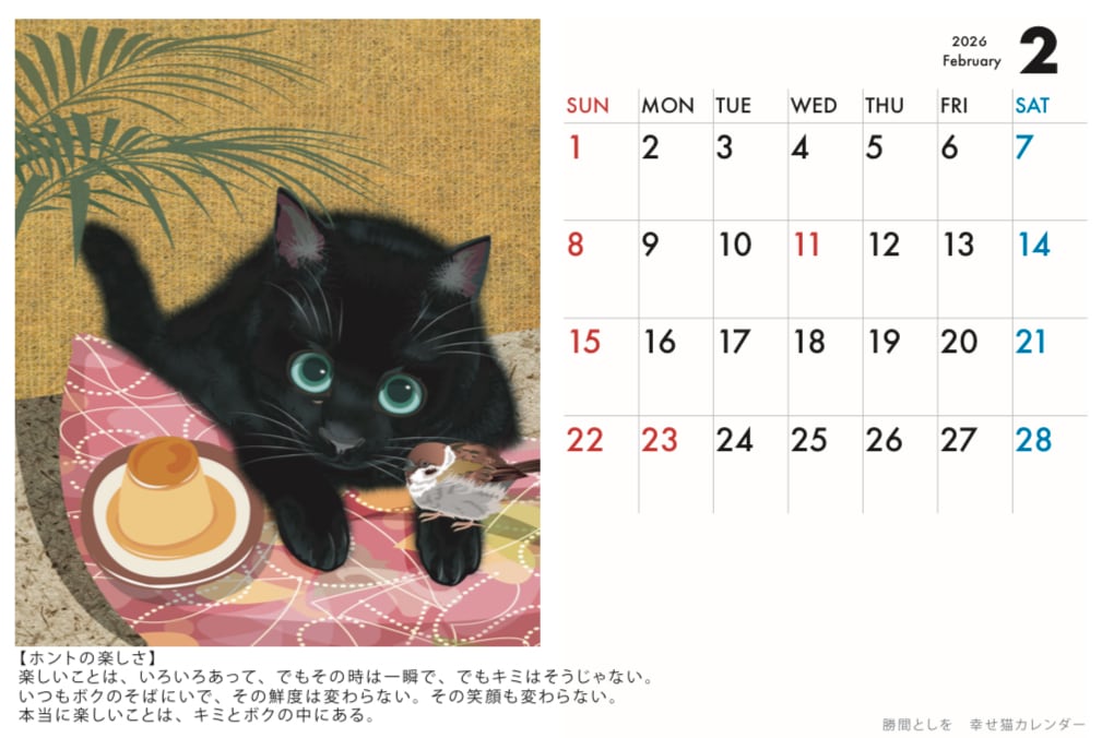 「勝間としをの幸せ猫カレンダー2026」が完成しました⭐︎