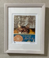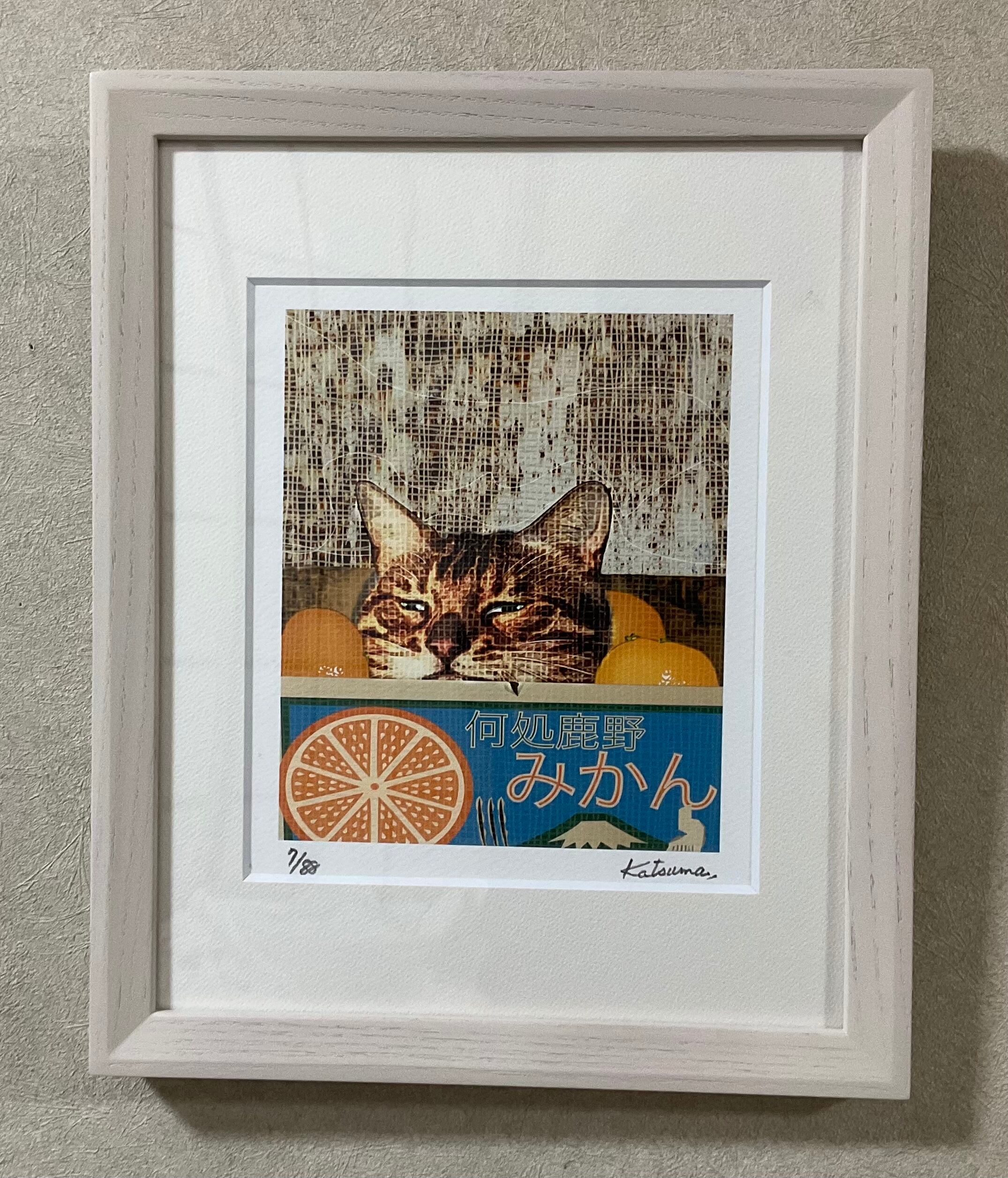 勝間としをの幸せ猫版画 ジクレー版画 画寸15×18㎝ 88部限定制作 額 緩W21 乳白 八ツ 額寸270×330mm 額・八ツ 絵に添えられた言葉とプロフィールをつけてお届けします。